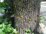 飛び込んできたオレンジのペンキ?!街路樹みんな根本から20センチほどにある