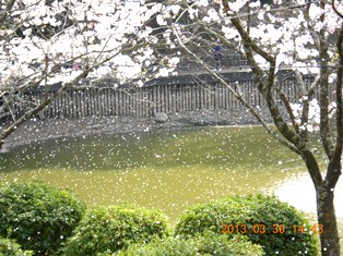 春風が吹くと花弁は花吹雪へとなり、水面はキラキラと輝き