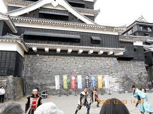 お城を訪れた人を盛り上げてくれる武者姿の加藤清正や家臣、娘など。