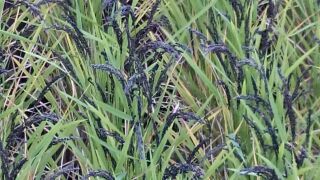 そんな中、真っ黒な稲穂を発見!!赤米??
