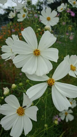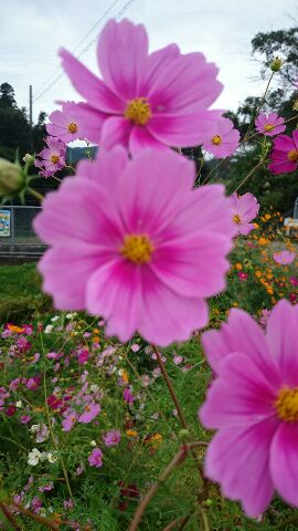 風にゆれる色とりどりのコスモスたち。まるでコーラス隊のようです。