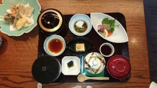 ライトアップされた石庭を見ながら、おいしく頂けて、ツイてました!!