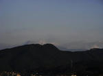 お墓から晴れ渡ったはるか向こうに、雪の帽子をかぶった普賢岳のドーム