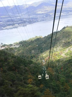 した。10分の船旅の後はロープウェイで獅子岩駅までゴンドラのような