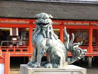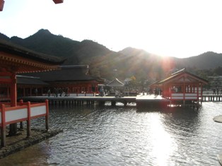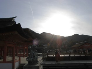 そして厳島神社へ。長い朱塗りの回廊を歩きながら、香る磯の香りが