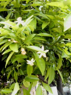 その中でも、ジャスミンにも劣らないようなよい香りが、ミカンの木に咲く白い花から香って