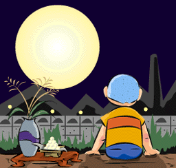 一般家庭では、月神や玉うさぎの絵像をかかげ、日が暮れかかったら、月の出る方向に台を据え、秋の七草を生け、酒、団子、里芋などを、