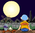 まだ先ですが、十五夜お月さまをお団子備えながら?(食べながら)
