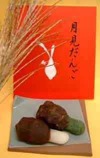 月見にだんごを供える習慣が出来、芒、芋等と共に三宝に15個盛りました。