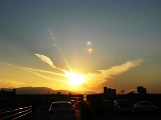 帰りに空港を通りかかった時に、感動ものの夕日に遭遇しました。