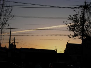 そして本日仕事帰りの空に飛行機雲から発達した面白い雲の中