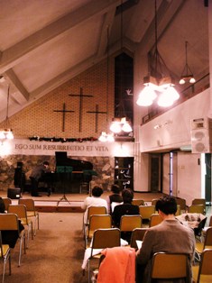 市内にある教会のホールでの歌とピアノとフルートによるコンサート。