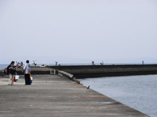 たくさんの釣り人(地元の方)がいらしゃる中、ウニやカニを竿で釣って