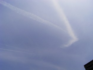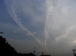 良いお天気で空を見上げると雲による東を指す矢印がありました。