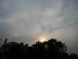 帰りに羽のような雲とその横には彩雲なのか、光輪なのかとっても