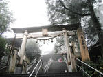 東御手洗水で龍神さまのお水を頂き、しばし雨粒が木々の間から