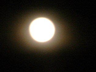 夜の満月は、光輝きこれまたお月さまの周りに、不思議な光のベールが