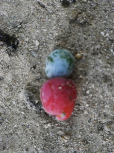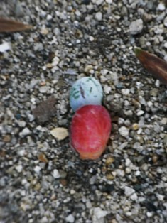最後は氏神様へ。参拝して鳥居を出ようと足元をみると人形の実が落ちて