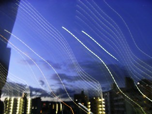早朝の窓から見える景色ですが、ぶれたのでしょうね。。まぁ~面白いな