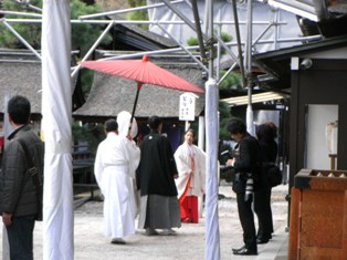 縁結びの神社でもあったようで、摂社の縁結びの御社のまえは順番待ちの