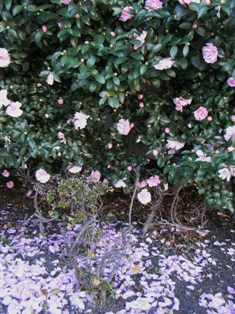 を咲かせ、散らせた花びらはピンクの絨毯の様です。