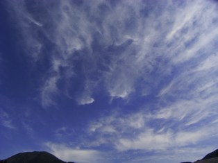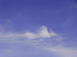 空が気になり見上げると丁度向いあわせのように鳥に似た雲がありました