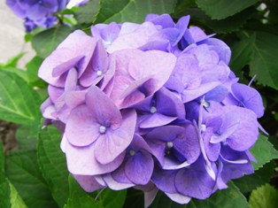 雨が降ると紫陽花が喜んでいるかのように、段々と色づいていく。