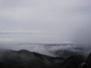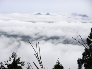 ずっと車で上って行くと何と雲海が木々の間から見えます。きれい!!