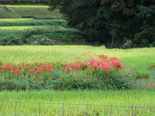 峠を過ぎると田んぼのあぜ道に彼岸花が咲き始めています。