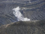 中岳の頂上は狭く写真を撮ってすぐ下山していると火口から突然噴煙が上