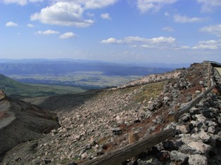 噴火口が良く見え、噴火口近くの満車の駐車場やそこに至る道の車の渋滞