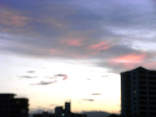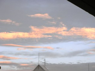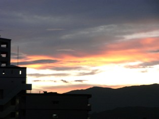 今朝の朝焼けです。秒単位で変わる空の色と明るさの度合いは、そのまま