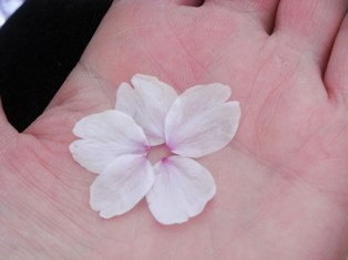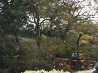 花吹雪・・・まるで雪のように風に桜の花びらが舞って飛んでいきます。