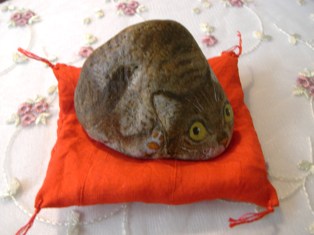 つきました。それが写真の河原の石に絵筆で描いたネコちゃんと色紙や