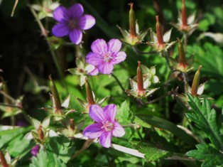 色づき始めた山々の景色。蝶が飛んでいたり、朝顔も咲いていたりと