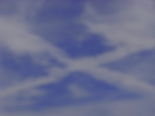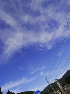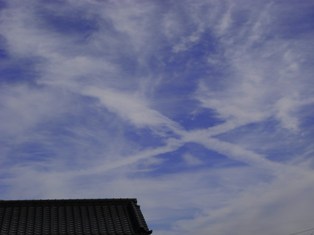 飛行機雲からクロスに発展した雲。面白いですよね。