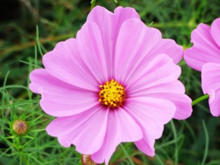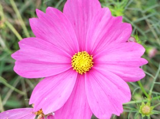 風に揺れるコスモスの花々は、コーラスのように見えます。