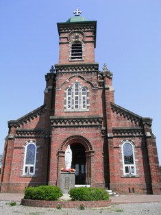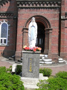 福岡にある大天使ミカエル教会と同じ雰囲気の赤レンガとステンドガラス