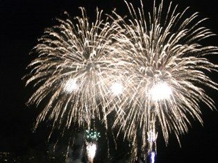 ヒュ~ヒュ~と音を発しながら四方八方へ飛び散る花火を見て