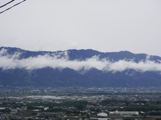 朝の清々しい空気と山間に立ちこめていた雲がどんどん上へと上がって