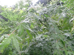 人の気分は沈みがちかも知れませんが、紫陽花は恵みの雨に笑顔の花が
