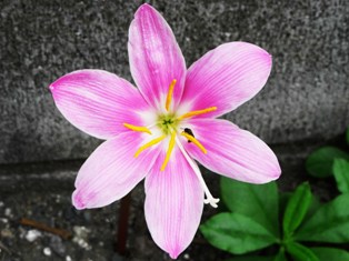 メイン通りから一つ路地を入ると道路の脇に、可憐な花が一輪。