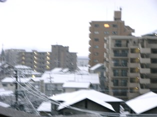 朝、真っ白な綿帽子をかぶった世界が、屋根屋根に見えましたね。