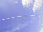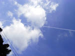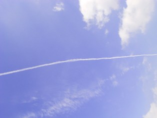空いっぱいに、飛行機雲が一直線に伸びて行きます。うまく収まりきれな