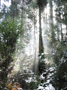 上がる事ができました。その林の間に差し込む光のカーテンはため息が出