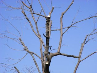 白い実が青空の中で、可愛い存在感を示しているのですが、剪定されて