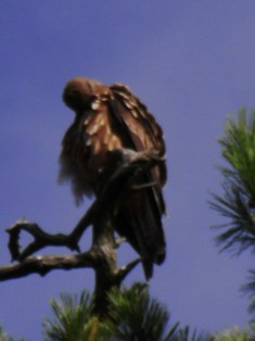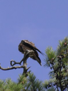 うみねこならぬ、鳶が空高く舞い、その松の木のてっぺんに停まり可愛い