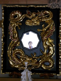 社務所の玄関にあった屏風というか、鏡がとても美しかったです。
