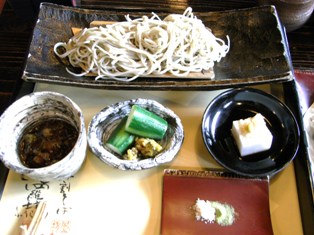 手打ちの美味しいお蕎麦と新鮮な山菜やエビのてんぷらを抹茶塩で頂きま