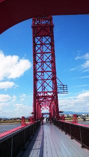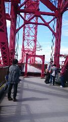 橋の中央部分が船が通るために定期的に跳ね上がる。